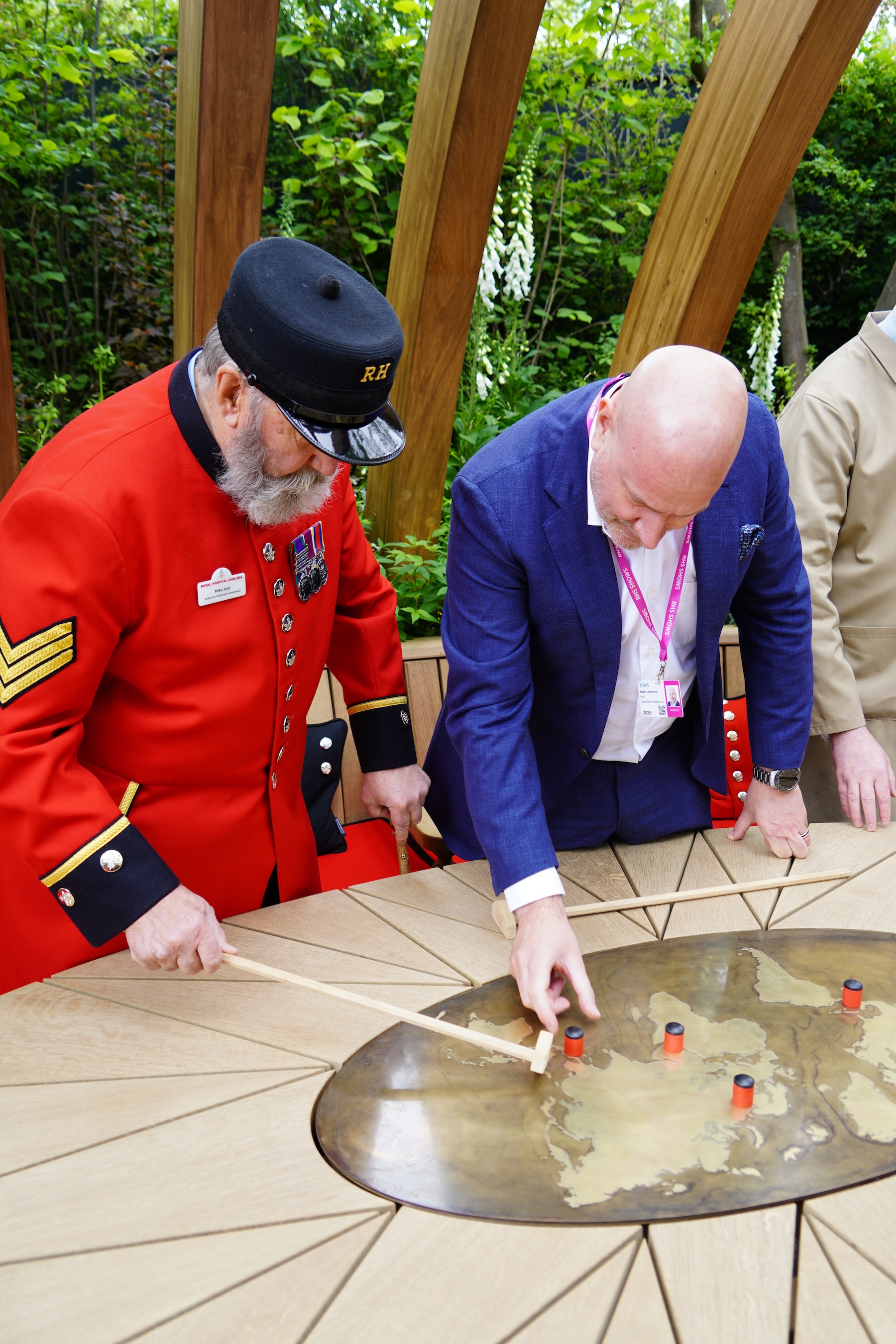 Designed as a sheltered woodland space, the garden provides a tranquil and immersive environment for the Chelsea Pensioners, their families, and visiting veterans. At its centre is a welcoming seating area, upholstered using recycled scarlet uniforms, surrounding a bespoke world map table, a subtle nod to the shared journeys and far-reaching service of those who call the Royal Hospital home.